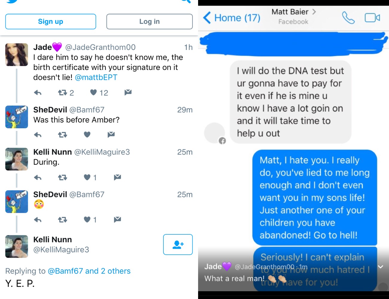 “Jade,” told the Twitter-verse that she has both a birth certificate with Matt’s signature on it and a DNA test confirming Matt’s paternity of the child. So far, though, she has provided proof of neither outside of her initial claims and has since deleted not only the tweets, but her entire account.